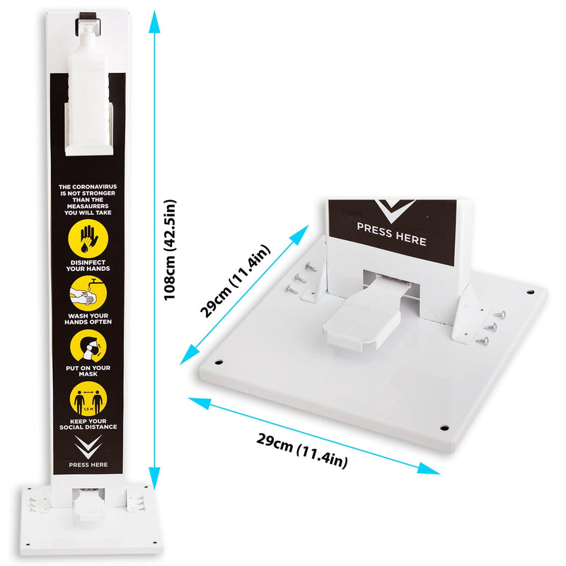 • HANDS-FREE DESIGN: The handy foot pedal provides you with a way to dispense gel without touching the bottle or any buttons. The sturdy base can be positioned in whichever spot you need it and can be screwed in place to secure it to the ground.